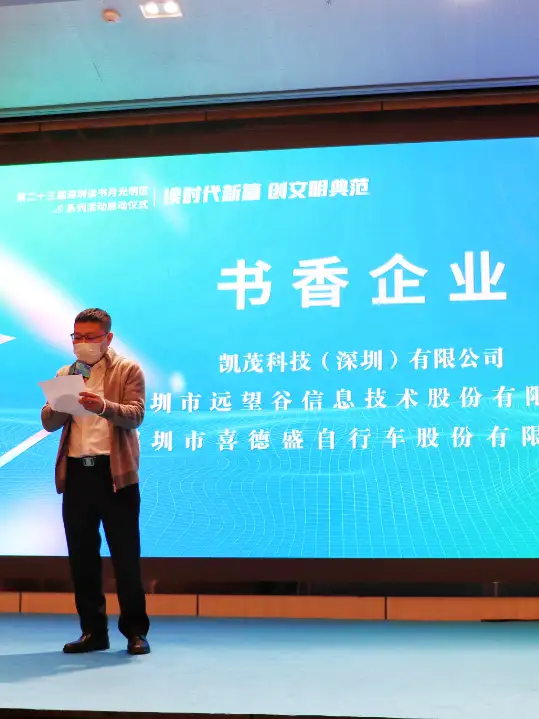 远望谷在第二十三届深圳读书月光明区书香系列评选活动中荣获“书香企业”荣誉称号,远望谷已连续两年荣获此殊荣,活动现场收到了光明区公共文化艺术和体育中心送上的“书香企业”奖牌,远望谷高级副总裁王云波上台领取荣誉牌匾并进行发言。